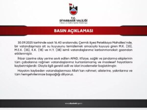Çermik’te su kuyusuna giren 4 kişi karbonmonoksit zehirlenmesinden hayatını kaybetti.
