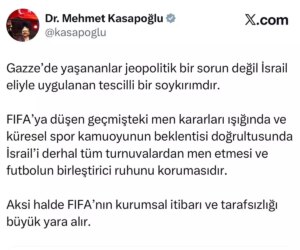 Dr. Mehmet Kasapoğlu, FIFA Başkanı Gianni Infantino’nun Gazze’deki durumu jeopolitik sorun olarak nitelendirmesine karşı çıkarak İsrail’in uluslararası müsabakalardan men edilmesi gerektiğini savundu. Kasapoğlu, yaşananların bir soykırım olduğunu vurguladı.