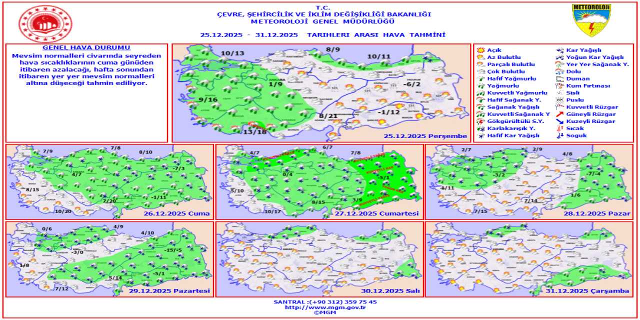 Meteoroloji Genel Müdürlüğü tarafından yapılan tahminlere göre: