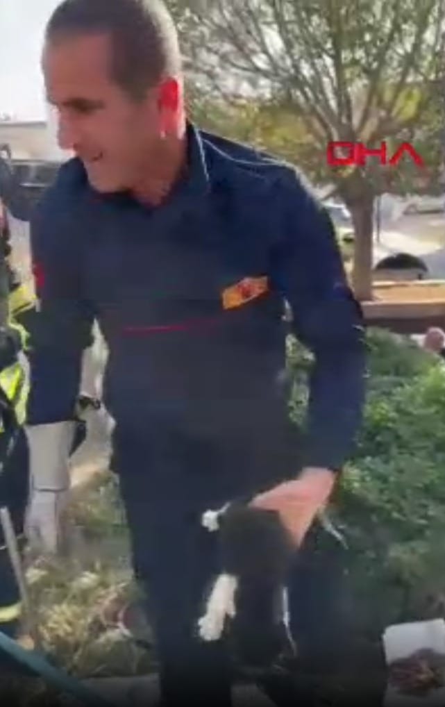İTFAİYE EKİPLERİ YAVRU KEDİYİ KURTARDI!