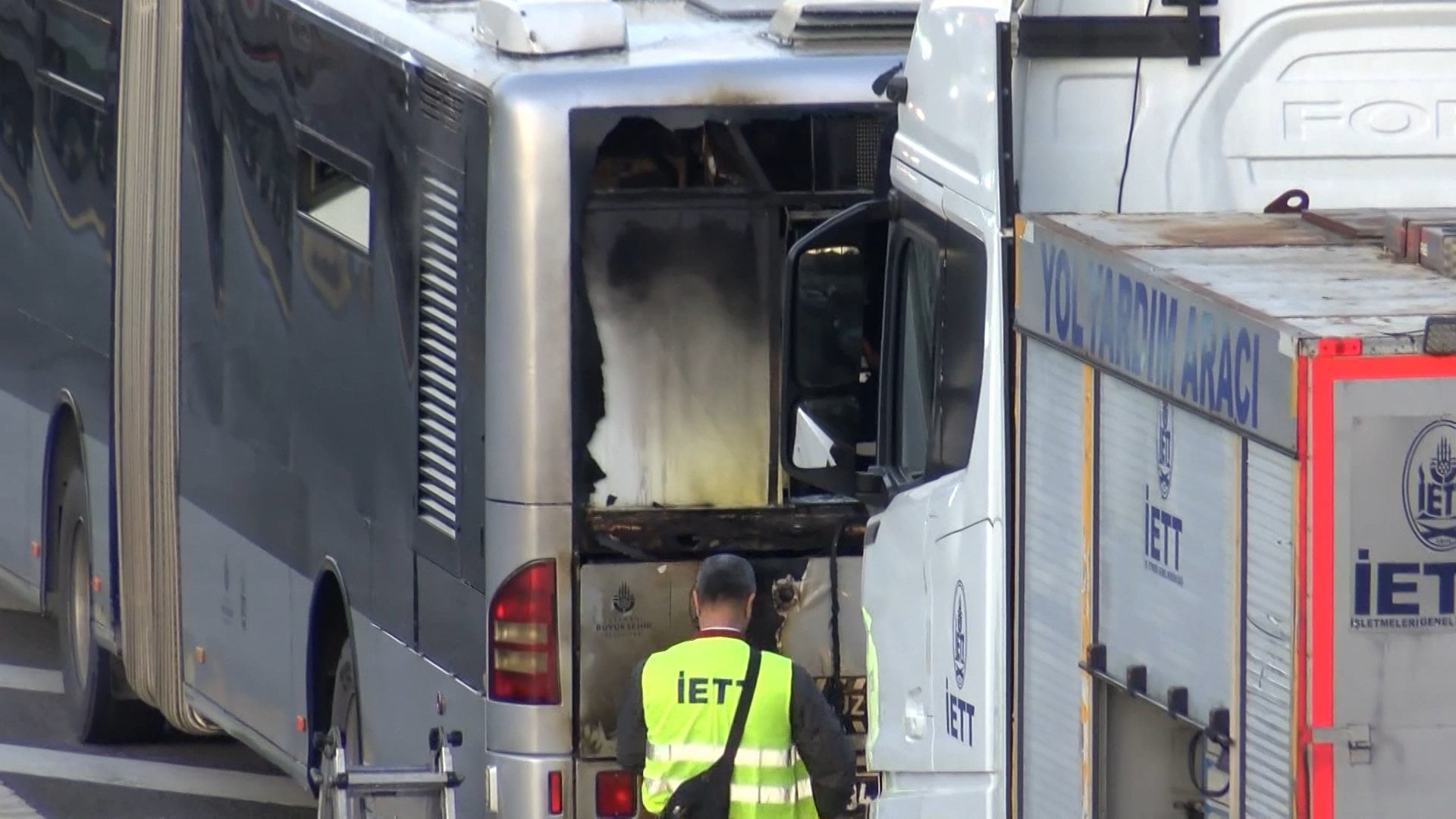 Metrobüste yangın çıktı